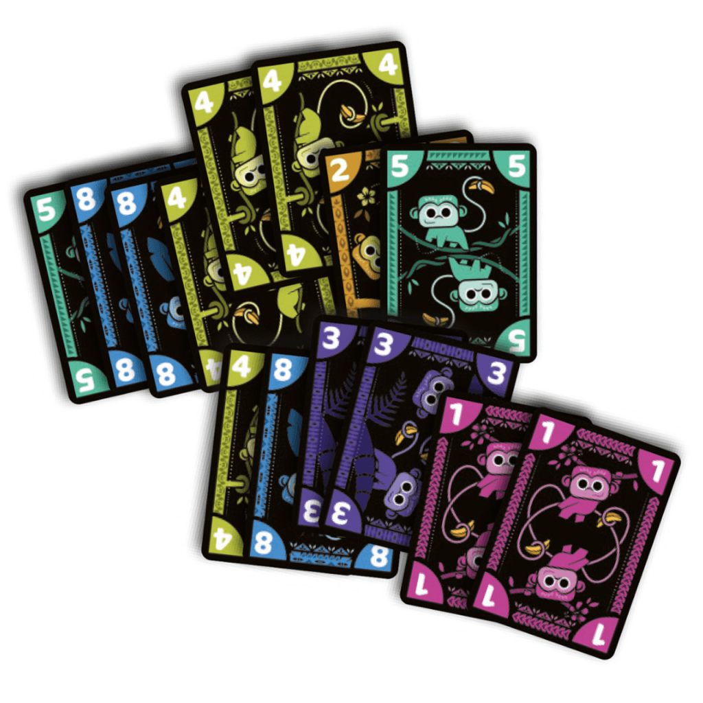 Diseñado por Toshiki Arao e ilustrado por Laura Michaud (Hanabi, Trio), este juego de cartas lo pueden disfrutar en grupos de 3 a 5 jugadores a partir de los 10 años. Jungo nos reta a deshacernos de todas las cartas antes que lo hagan nuestros oponentes, formando y lanzando conjuntos de cartas.